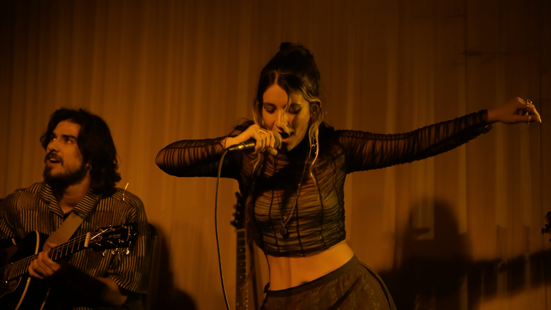 L.O.B.A merges music, poetry, and storytelling. Rooted in traditional Portuguese rhythms yet flowing with contemporary sounds, it creates immersive soundscapes. Guided by Adri’s voice and Luís’s guitar, it takes audiences on journeys of celebration, ritual and imagination.